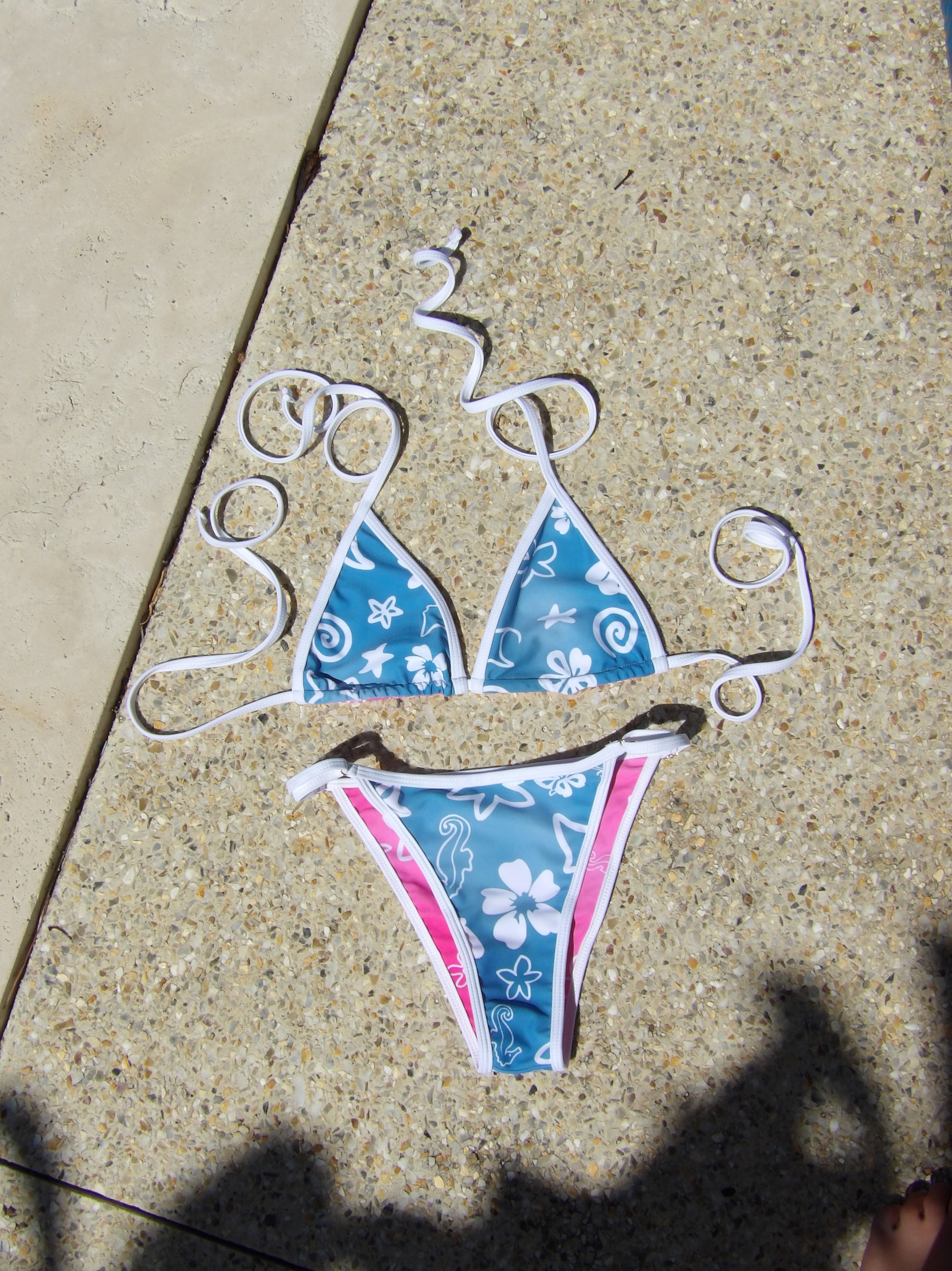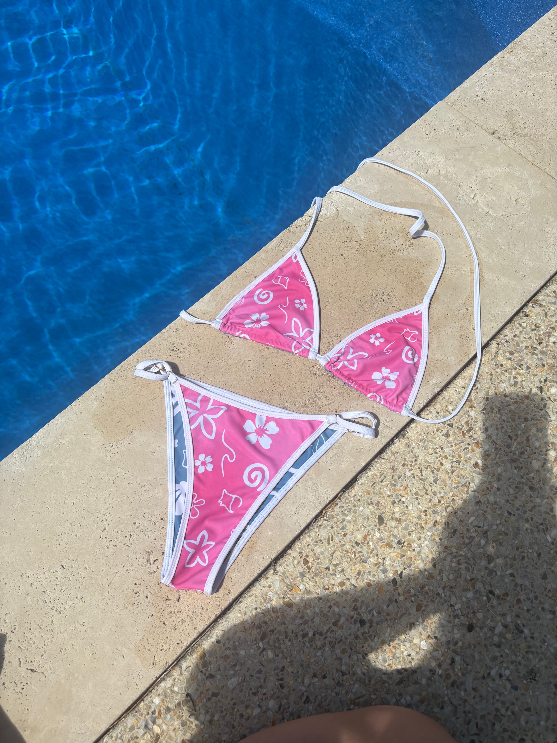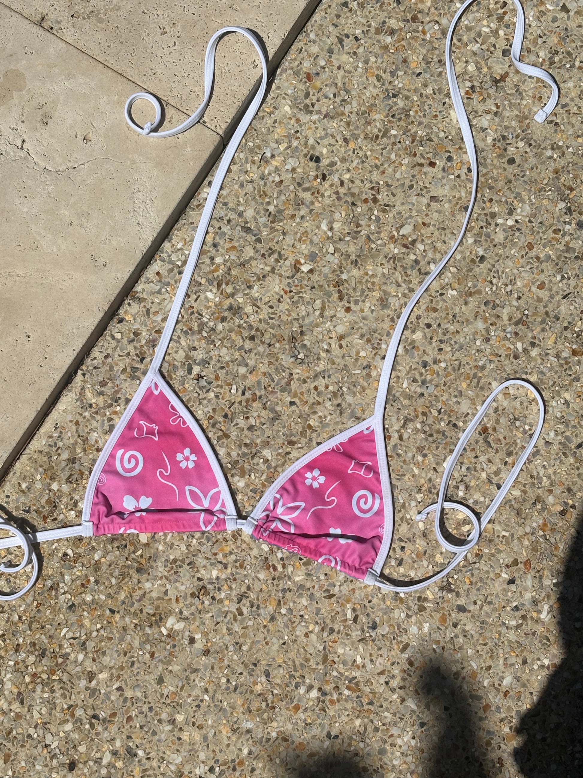 Meet Aloha, your two-in-one summer staple. This flattering triangle bikini top is fully reversible with a pink side and a blue side, giving you the freedom to switch your vibe whenever you want. Finished with thin white straps for a soft, minimal look, she’s playful, versatile, and made for sun-soaked days.