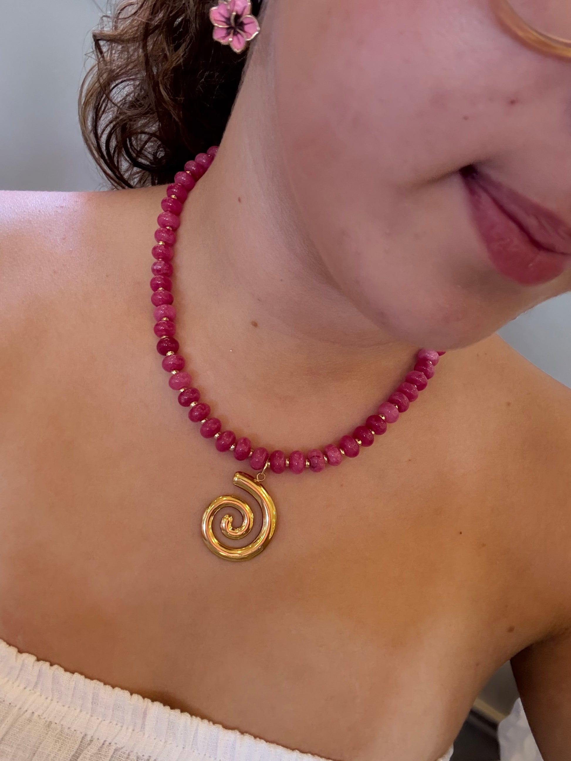 Our Aria necklace is your perfect chunky statement necklace to add a pop of colour to your everyday stack! She comes in teal, hot pink, light pink, purple and a faint lavender. The perfect summer necklace.