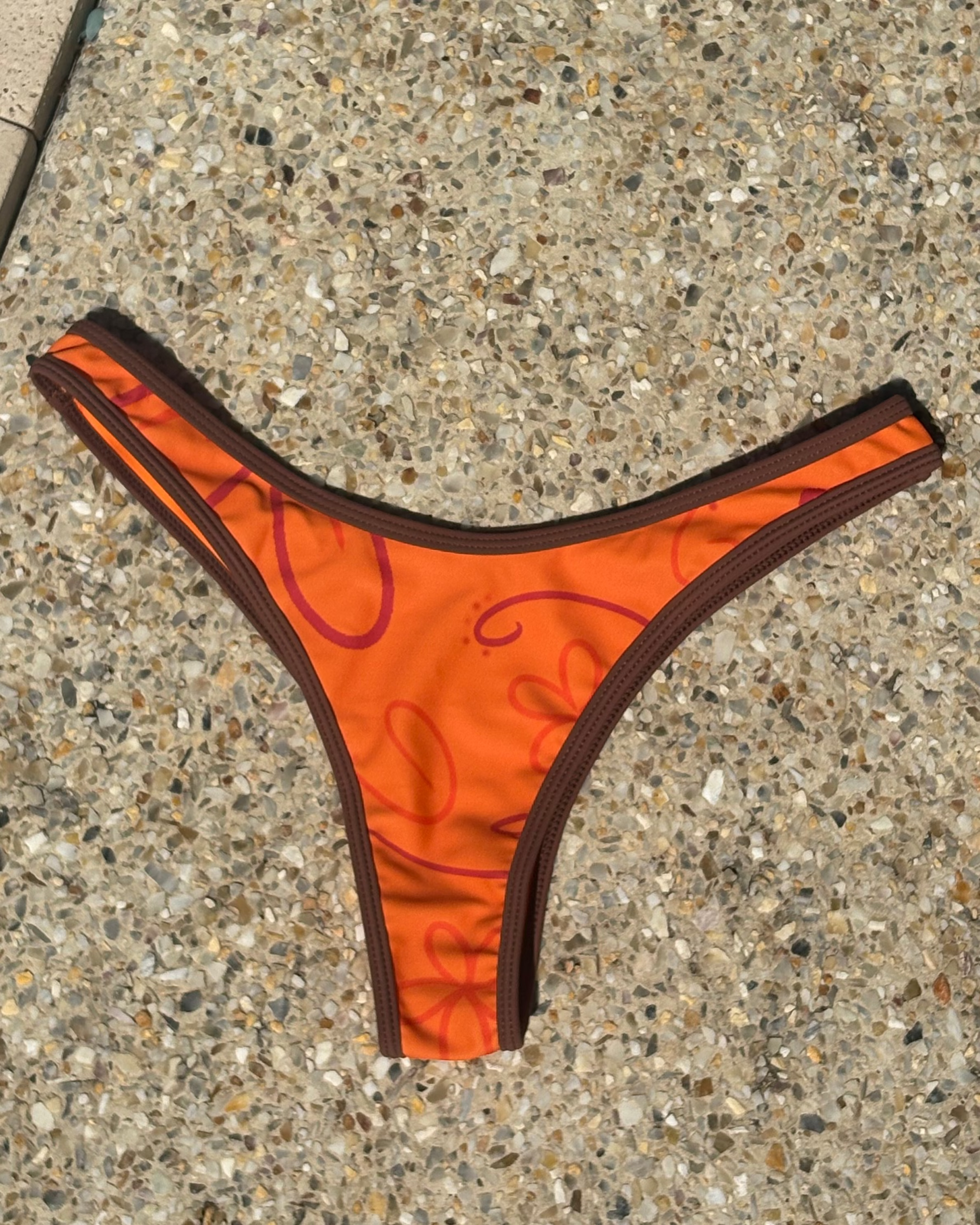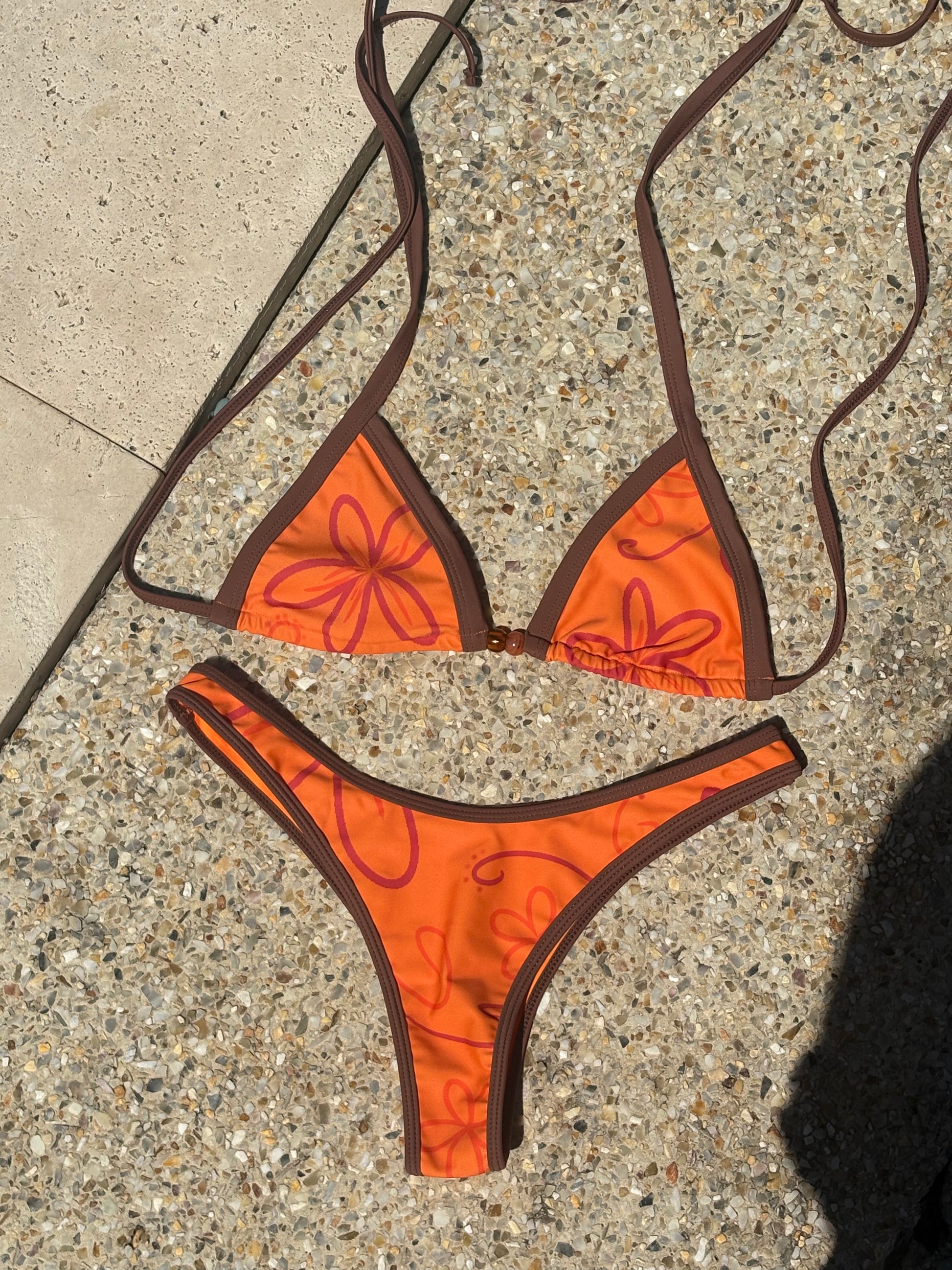 The Leilani Bottoms are your ultimate summer staple, designed in a cheeky cut that sculpts and flatters in all the right places. Featuring the same eye-catching orange floral print with warm brown ribbed detailing, they’re the perfect balance of confident, feminine, and effortless for sun-soaked days.
